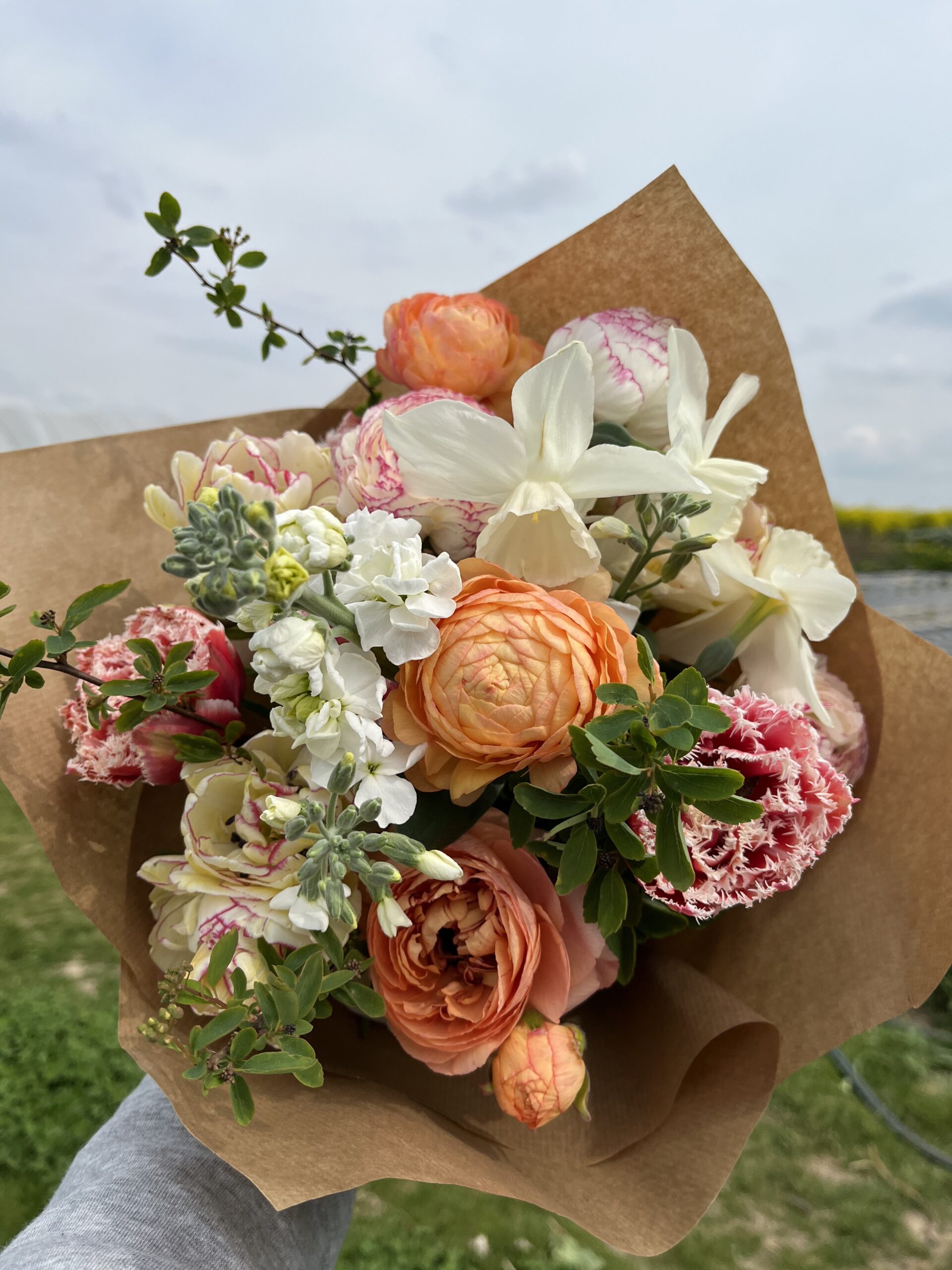 Bouquet de fleurs fraiches réalisé en direct du champ de avril à octobre.
